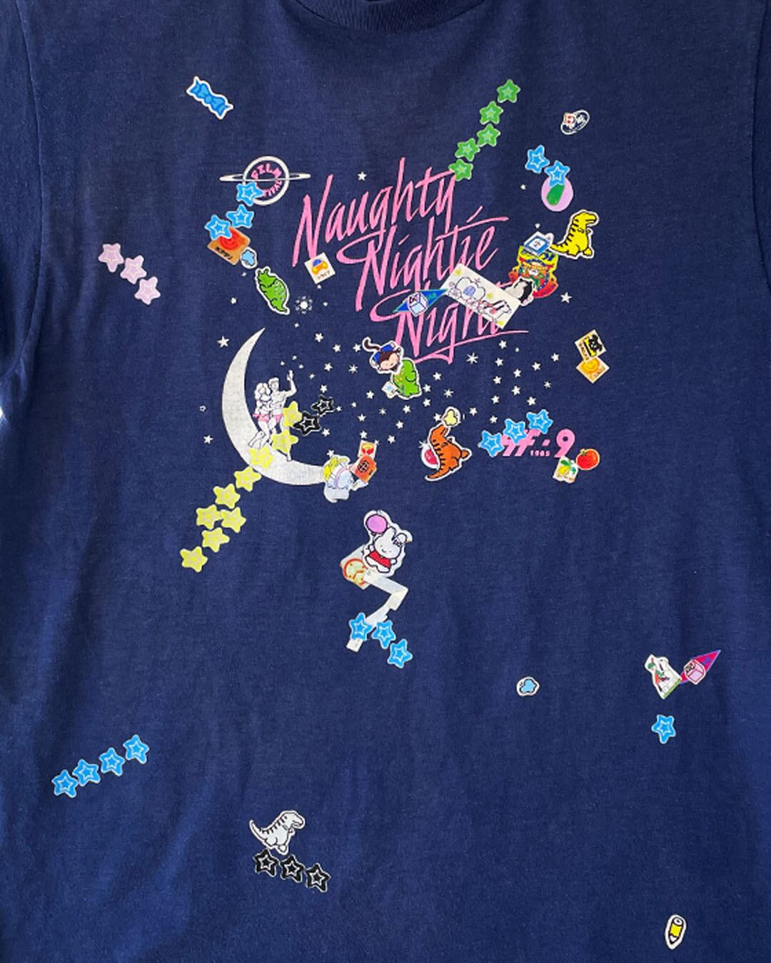 古着のTシャツをベースにシール風プリントを施したTシャツです。